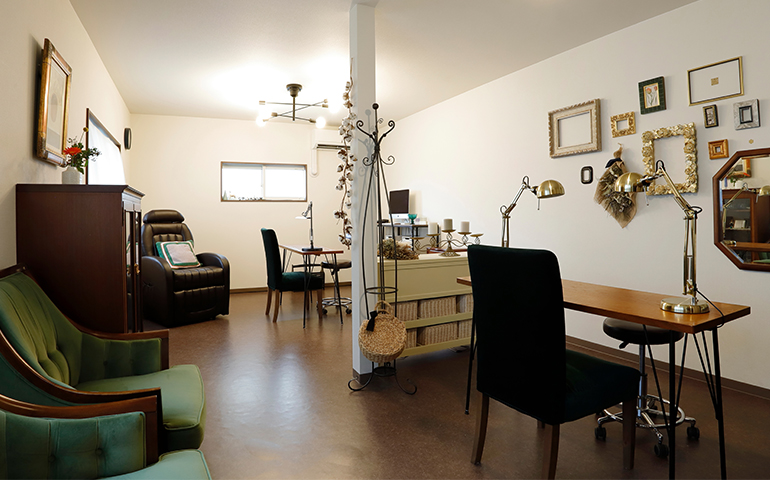 Dropは大泉学園・新座市の境目の大人の為のネイルサロンです。当サロンは、少しでもお客様にリラックスしていただけるよう、アンティーク家具に囲まれた広々とした空間で施術を行っています。