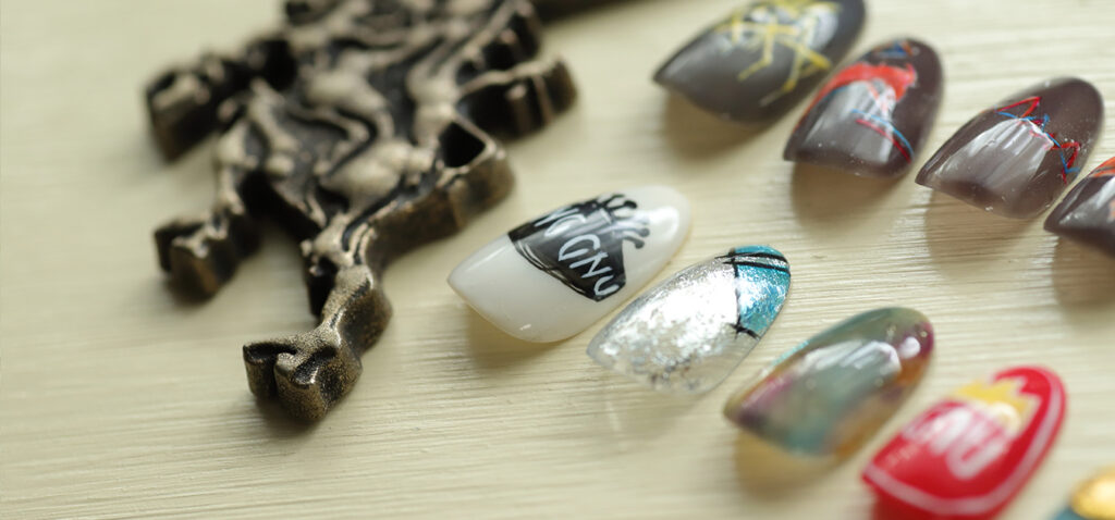 ライブなどイベント前に、作品をイメージした推し活ネイルも承っています。お好きなデザインで仕上げる自分だけのネイル。デザインお持ち込みいただけます。※細かいアートは事前相談となります。